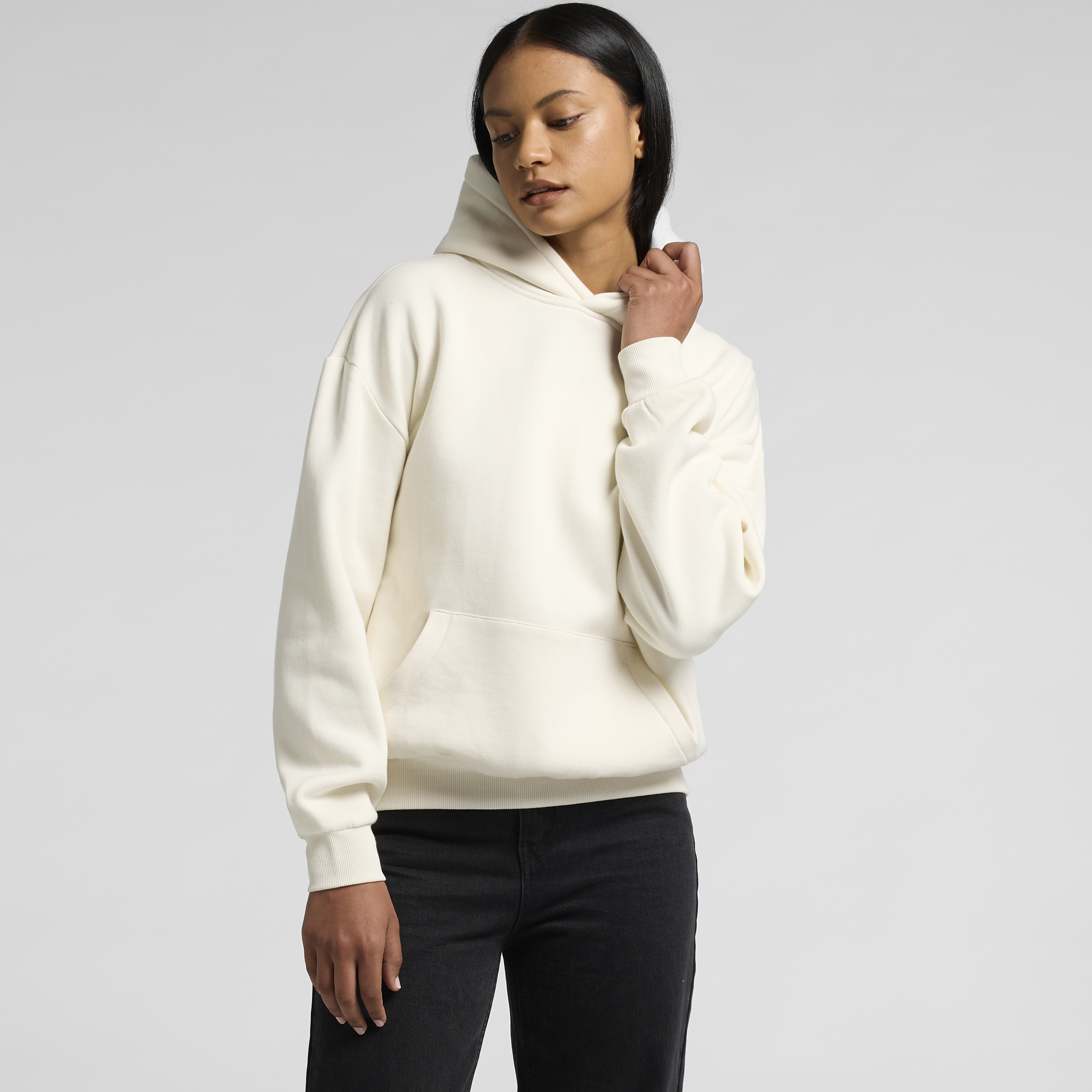 - Drawcord-free, unlined hood