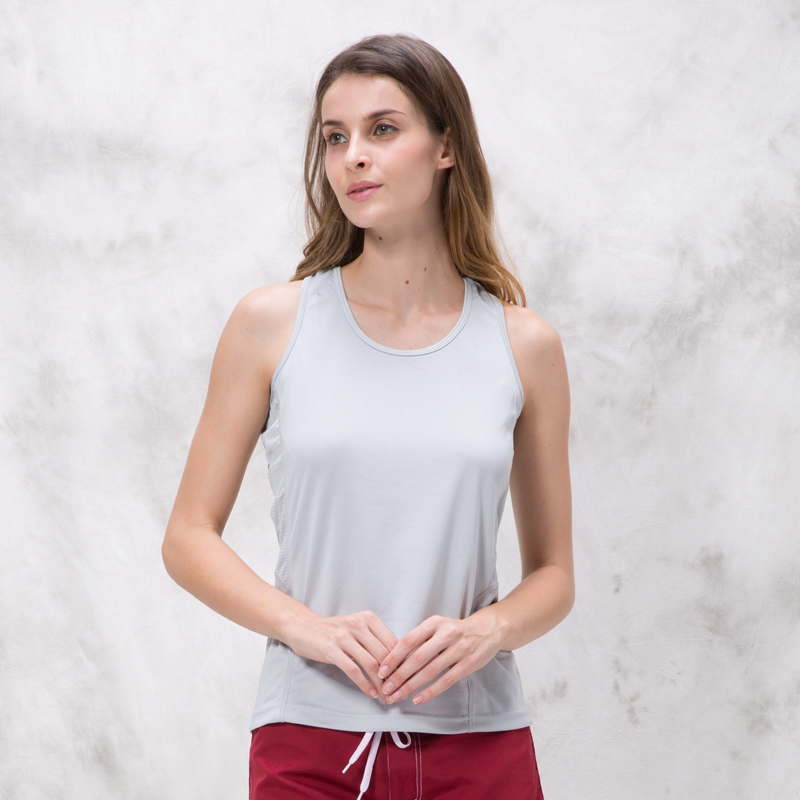 Style: Fine pique fabric with contrast stretch tapes on shoulders, inner placket and body sides. Self-fabric collar. UPF 30+ UV protection.